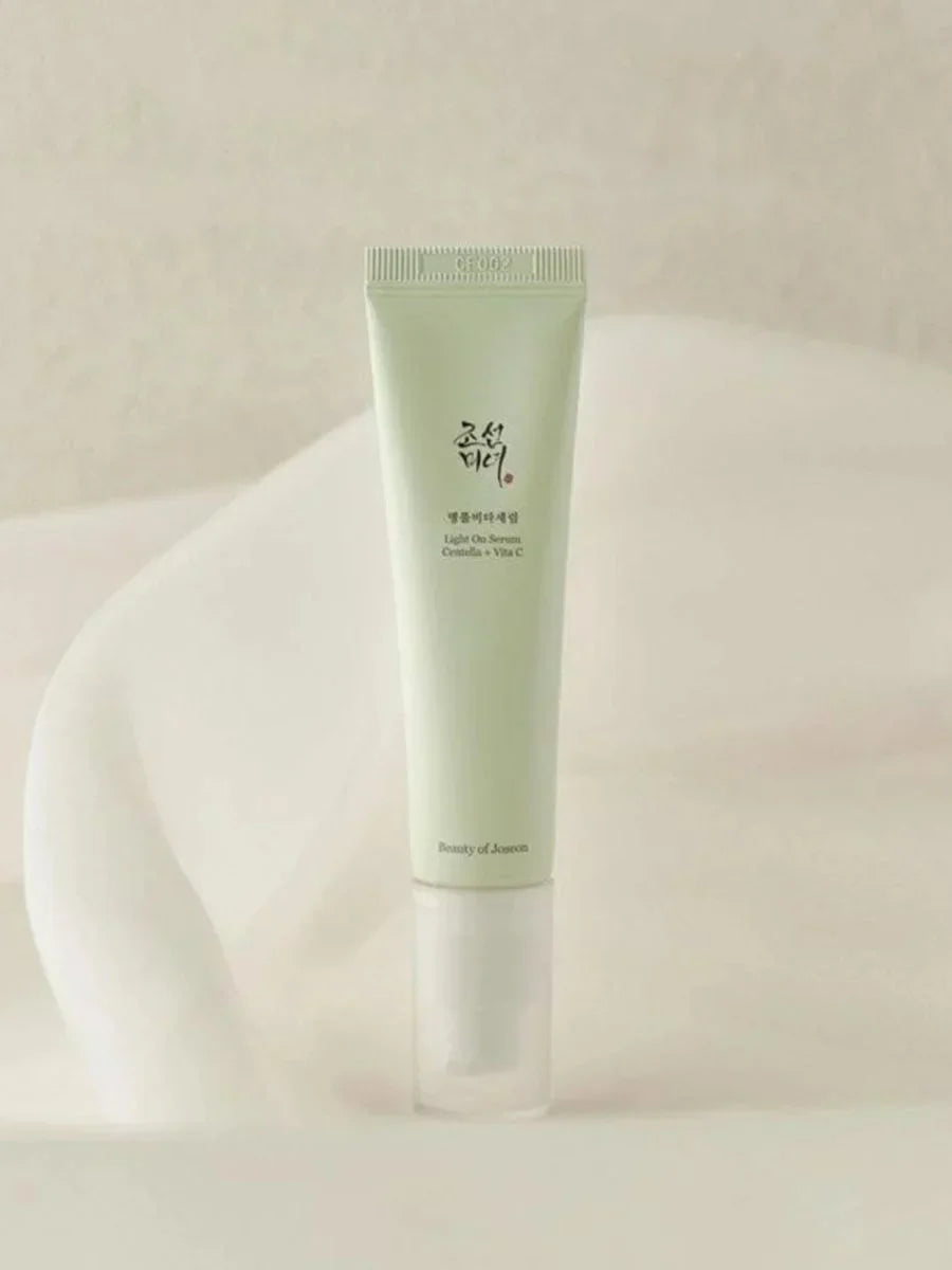 Illumine et revitalise ta peau avec le Light On Serum Centella + Vita C Beauty of Joseon. Ce sérum éclaircissant avancé combine la puissance de 10 % d'acide 3-O-éthyl-ascorbique, un dérivé stable de la vitamine C, avec 68 % d'extrait biologique de Centella Asiatica pour combattre l'hyperpigmentation, unifier le teint et hydrater intensément la peau.