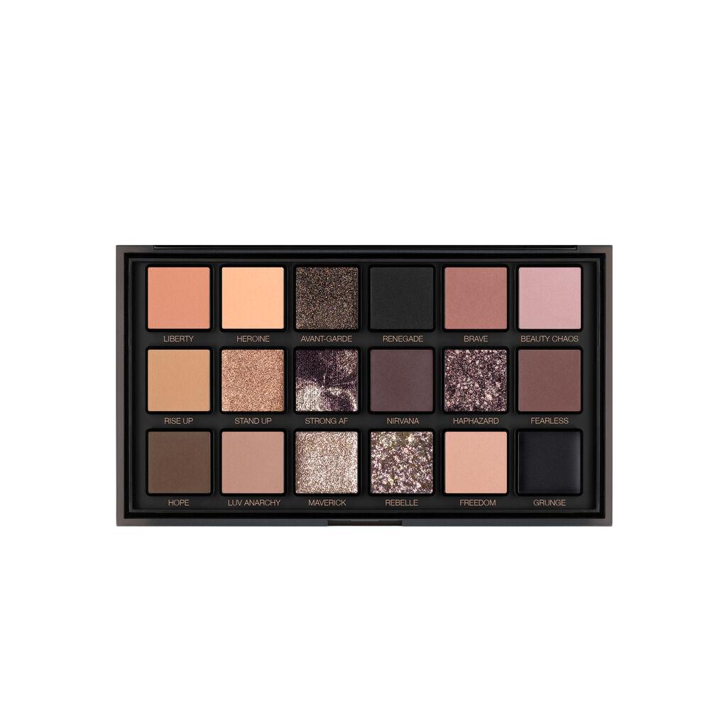 La Pretty Grunge Palette de Huda Beauty propose 18 fards puissants alliant nudes charbonneux, gris fumés, roses doux et finis métalliques intenses. Conçue pour créer des looks à la fois romantiques, edgy et audacieux, cette palette ultra-pigmentée offre des textures variées : mats veloutés, métalliques fondants, toppers pailletés et reflets multidimensionnels. Le must-have pour celles qui veulent révéler leur côté doux… ou rebelle.