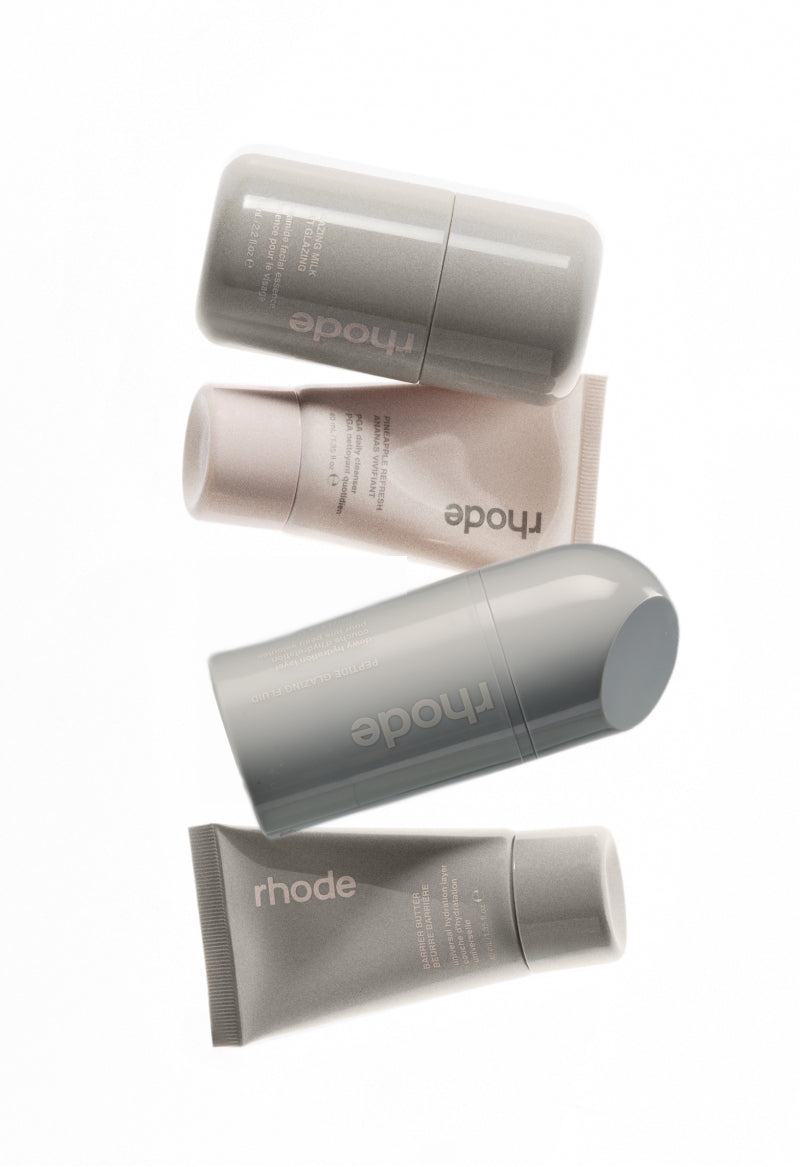 Take your rhode routine on the go. Our set of four travel-friendly skincare essentials keeps your skin looking hydrated and glazed from takeoff to landing. Reach for them morning and night, use solo or with other skincare, and mix them with makeup.