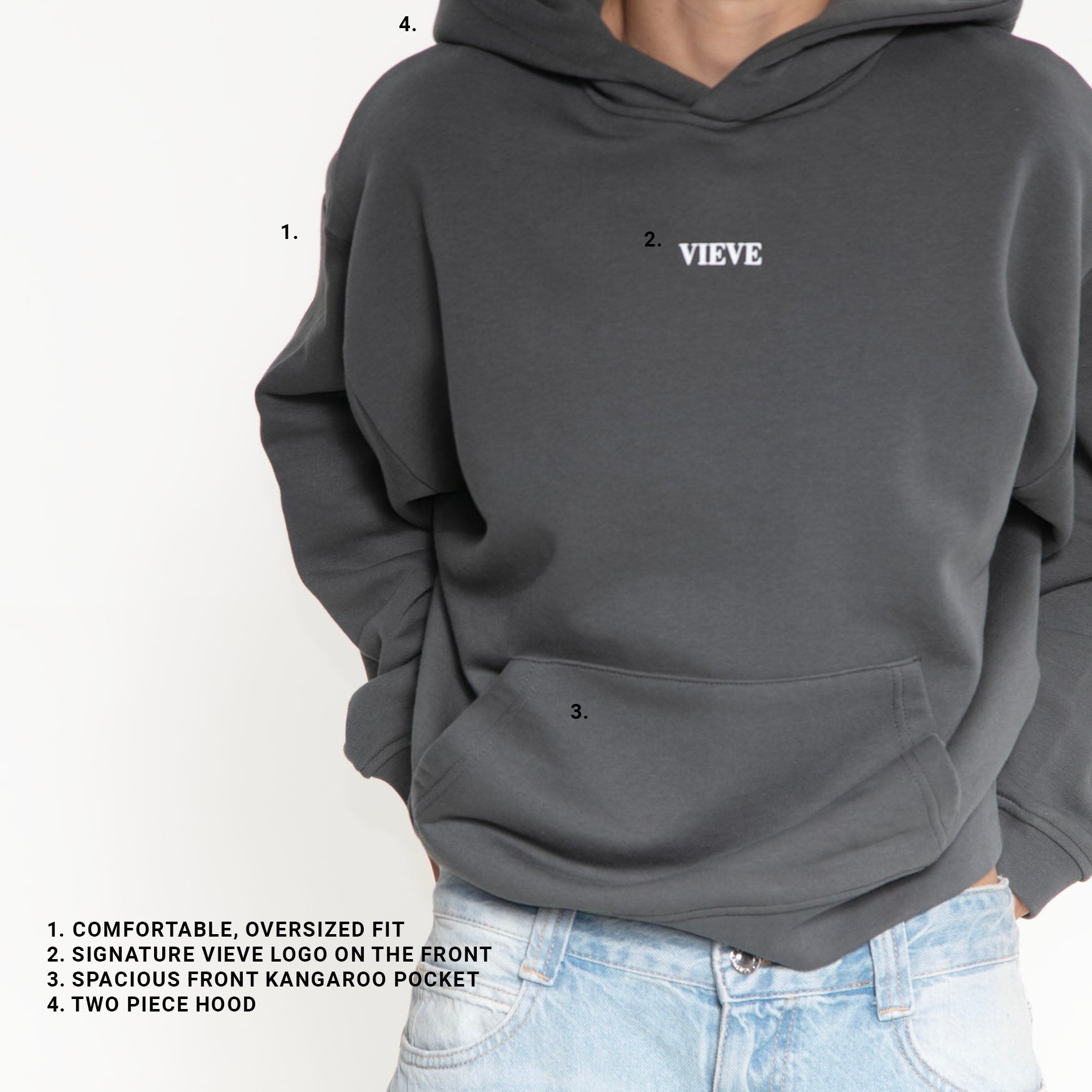 - Oversized, comfy fit